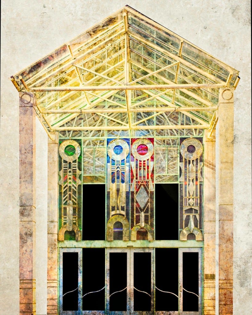 Those fellow Kiwis who know this entrance to the High Court will confirm that my rendering of the building's feature is highly stylised. I have added layers of textured patterns to accentuate the stunning beauty of the entrance.