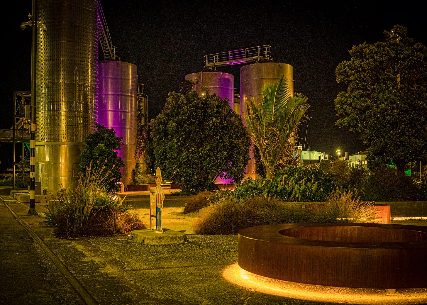 It is to the enduring credit of the landscape design team that the visual imprint of Silo Park, the epicentre of Wynyard Quarter, incorporates an array of retired storage silos. Those silos make manifest the industrial history of the district and especially at night create a stunning streetscape aesthetic.