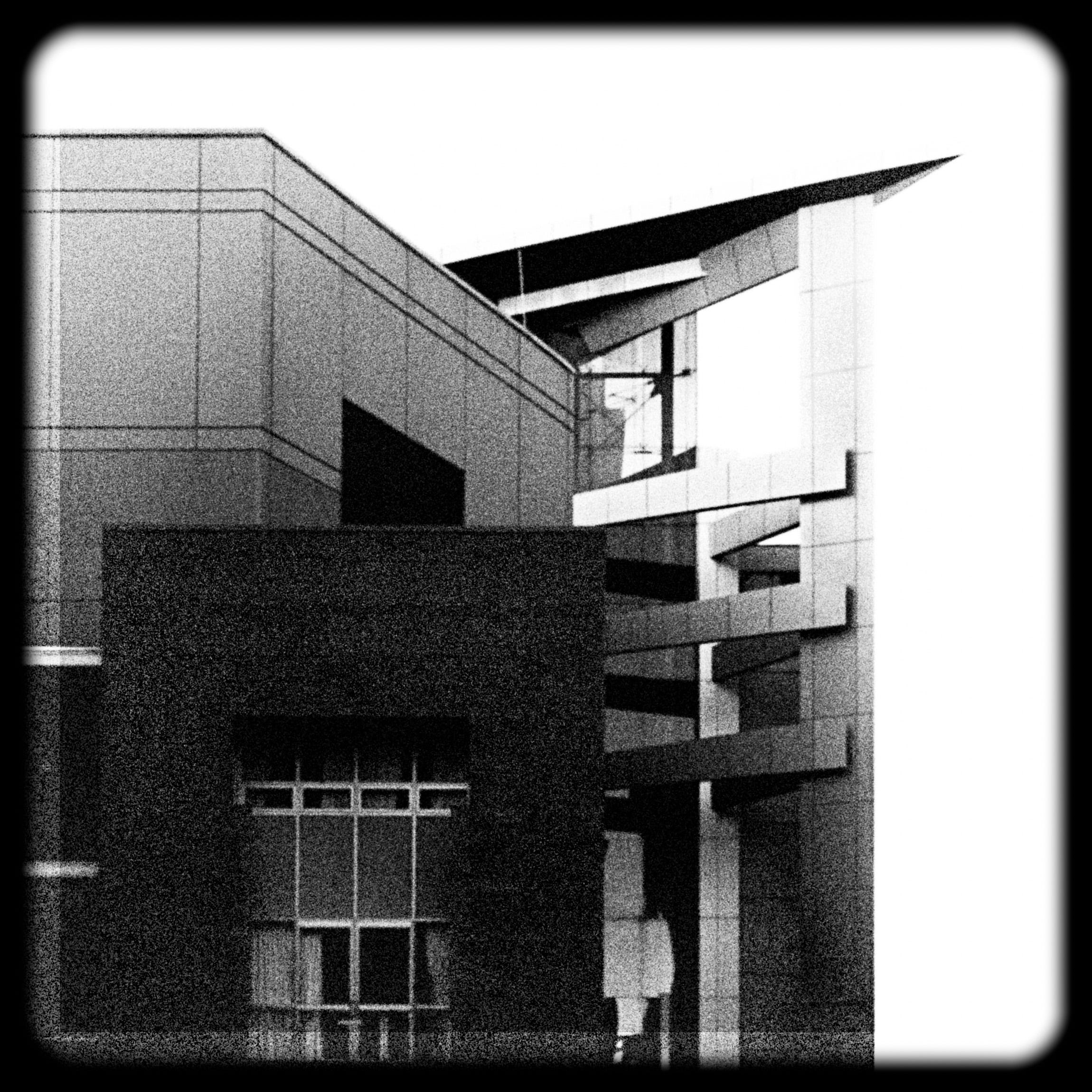 I found very appealing the interplay of staid geometric form in the foreground with the striking movement of asymmetrical and oppositional planes in the background.