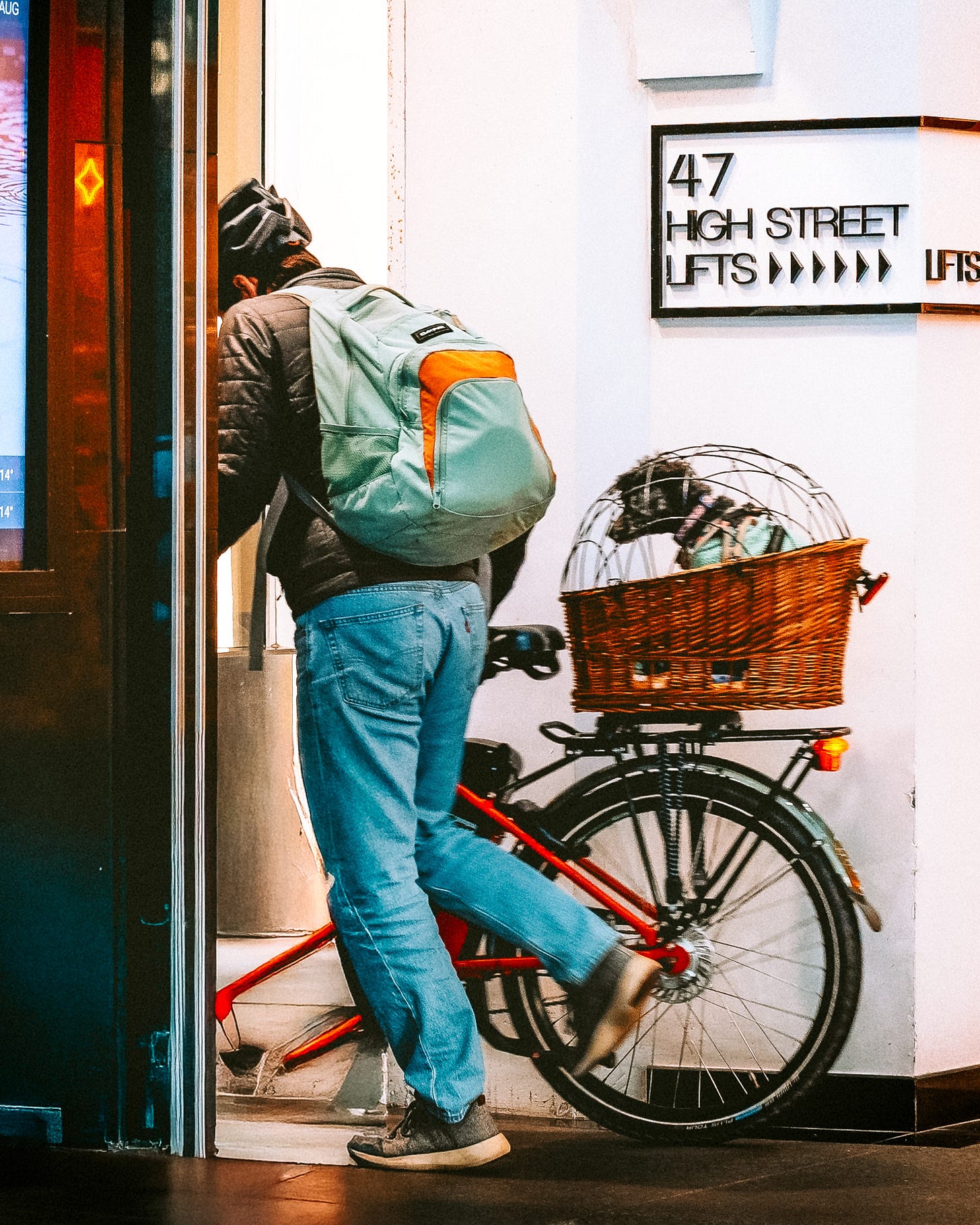man, bike, dog