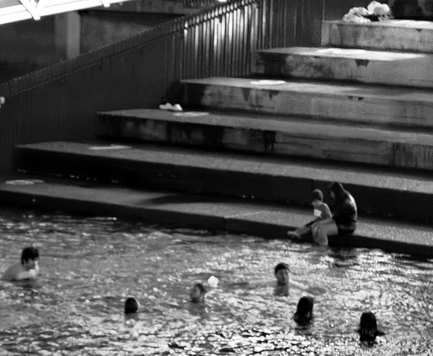On a walk back to my apartment in Wynyard Quarter after an evening meeting, I stopped at the Wynyard Crossing Bridge to watch a group of young people enjoying a chilly swim in the Karanga Plaza Harbour Pool.