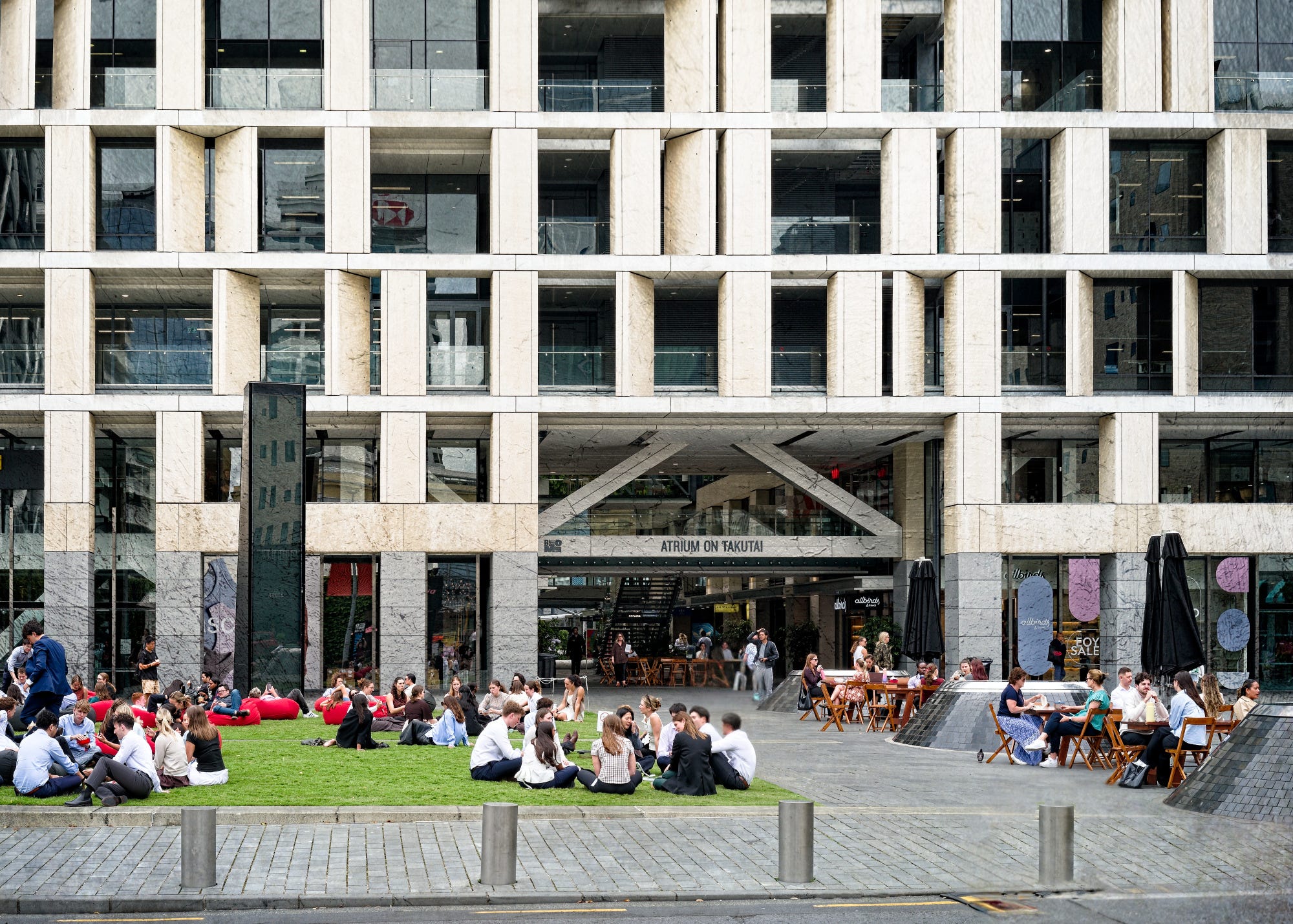 Bordered to the east by the EY Building and Gore Street along the its western boundary, Takutai Square is a civic incubator along Auckland’s foreshore. It’s a popular spot for the lunch crowd in the warm months. Regular food truck events and a weekly farmers market also draw large crowds.