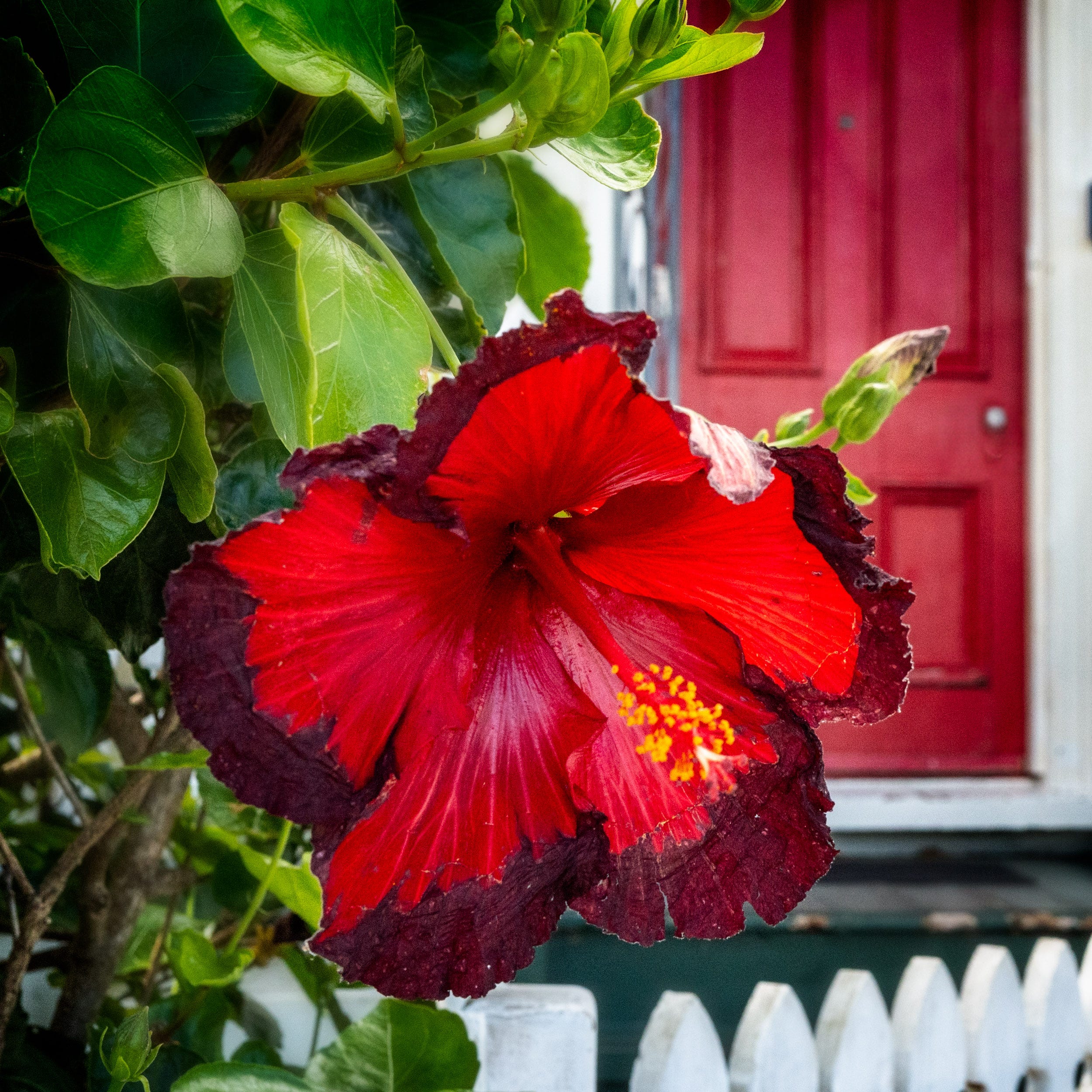 I found in the front yard of a nearby home further evidence of the neighbourhood’s amiability, as expressed through its street-side gardens. An exquisite Hibiscus flower poked its head out to greet me as I walked by.
